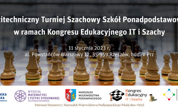 Już niebawem, 11.01.2023 r., Politechnika Rzeszowska będzie miejscem rozgrywania I Politechnicznego Turnieju Szachowego Szkół Ponadpodstawowych.